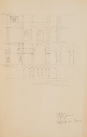 E. FÜRSTENAU (*1862), Blick vom Arno auf die Uffizien, um 1920, Bleistift