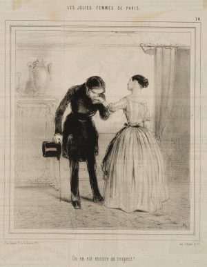E. BEAUMONT (1821-1888), Karikatur. Handkuss, Moderne Karikatur