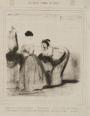 E. BEAUMONT (1821-1888), Karikatur. Unterhaltung zw. junge Damen, Moderne