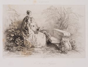 E. WATTIER (1800-1868), WATTIER, ‘Le Livre à Figures’ – 2 Damen in Parklandschaf