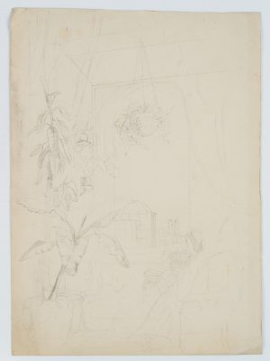 T. WEBER (1813-1875), Porträt Blick in den Garten, Romantik Botanisch