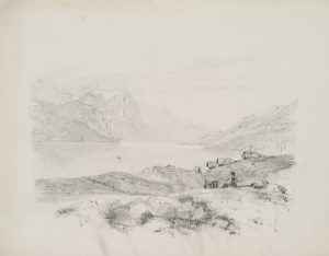 E. FÜRSTENAU (*1862), Rast am Gebirgssee, um 1920, Bleistift Romantik Landschaft