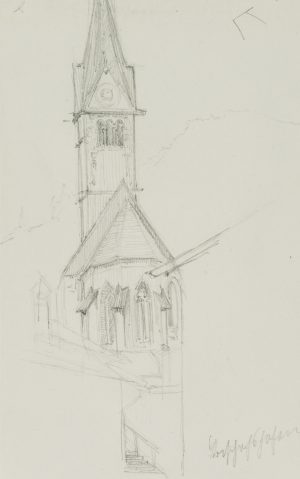 B. BURGER (1892-1968), Kirchturm und Chor, Bleistift Gegenständlich Architektur