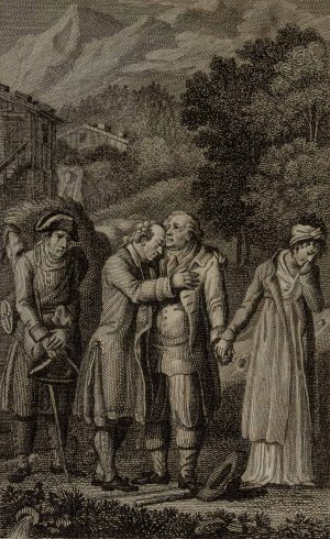 Unbekannt (19.Jhd), Der Abschied, Miniatur, Radierung Romantik Landschaft