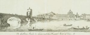 F. BOLLINGER (19.Jhd), Guillotine Brücke u. Hospital bei Lyon, Romantik