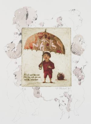 D. KLIESCH (1926-2013), Knabe mit erotischem Regenschirm, 1978, Radierung