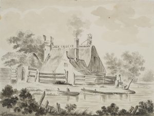 K. HOOG (19.Jhd), Haus am See, um 1840, Romantik Landschaft