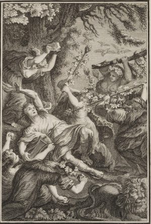 Unbekannt (18.Jhd), Meleager und Atalante mit dem Eber, Radierung Rokoko