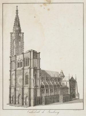 P. AHRENS (19.Jhd), Ulmer Münster mit Turmstumpf, um 1840, Sst. Historismus