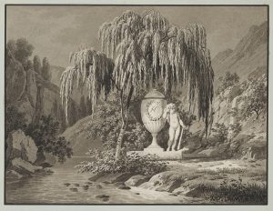 Unbekannt (18.Jhd), Gedenkblatt mit Urne, um 1790, Klassizismus Architektur
