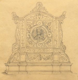 Unbekannt (19.Jhd), Entwurf eines Epitaphs mit Engel und Pfau, um 1870, Bleistif