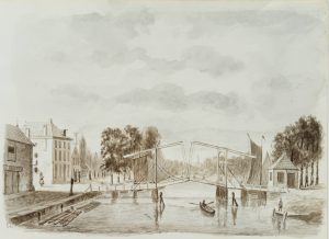 Unbekannt (19.Jhd), Zugbrücke an holländischem Kanal, Romantik Architektur