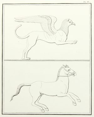 Unbekannt (19.Jhd), Umzeichnung antiker Reliefs, Greif und Pferd, Rad. Romantik