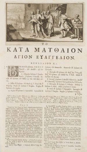 Unbekannt (18.Jhd), Kata Mattoaion’, Titelblatt aus ‘Novum Testamentum Graecum’,
