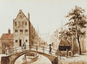 Unbekannt (19.Jhd), Grachtenansicht in Amsterdam mit Zuiderkerk, Romantik