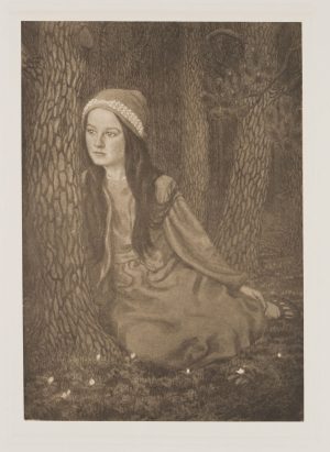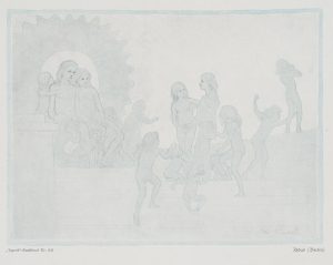 J. KURTHEN (*1892), Mädchen einen Kranz winden, 1925, Radierung Jugendstil