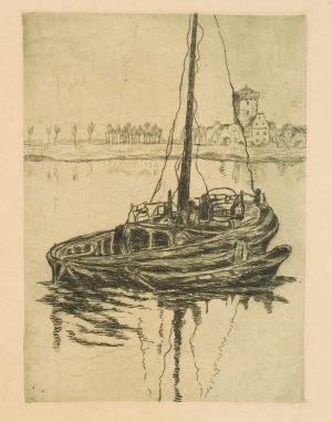 Unbekannt (20.Jhd), Kahn auf dem Wasser, Radierung Realismus Fischen