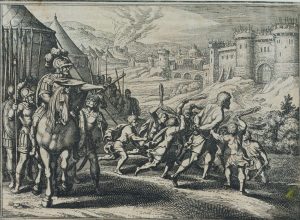 Unbekannt (18.Jhd), Buchillust zu Indianer-Roman. Schlachtenszene, Rad.