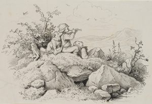RAU (*1827) nach RICHTER (*1803), Musizierender Knabe mit Mädchen, 1857,