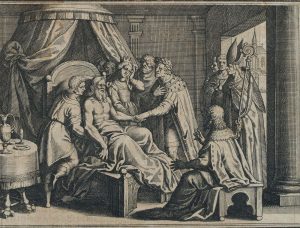 Unbekannt (18.Jhd), Hoher Besuch am Bett eines edlen Greisen, Barock