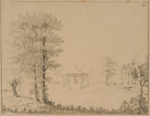 Unbekannt (19.Jhd), Parklandschaft mit Pavillon, um 1810, Romantik Landschaft