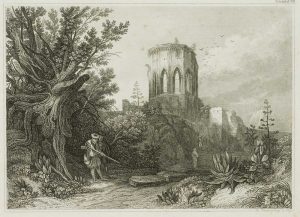 C. GRAIMBERG (*1774), Landschaft mit Bergfried, um 1800, Romantik Landschaft