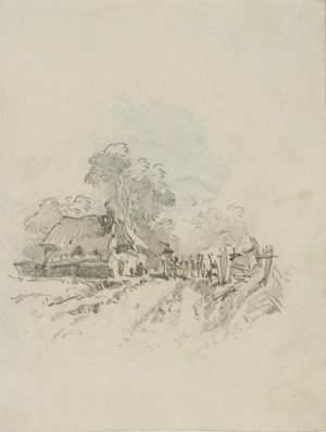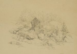 CARLE (19.Jhd), Bachlandschaft bei einem Gehöft, 1857, Bleistift Romantik
