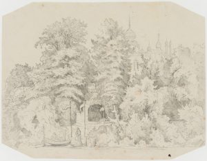 Unbekannt (19.Jhd), Bootsanleger am orientalischen Palast, Bleistift Romantik