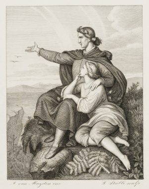 STÄBLI (*1812) nach Unbekannt (19.Jhd), Jocelin, Junges Paar in der Natur auf ei
