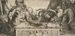 Unbekannt (19.Jhd), Allegorie zum holländ. Krieg mit Sarkophag, Hund, Hahn u. Lö