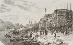 Unbekannt (19.Jhd), Blick auf Hotel National, Luzern, Schweiz, Romantik