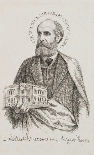 Unbekannt (19.Jhd), Bildnis eines Mannes mit Gebäude auf dem rechten Arm tragend