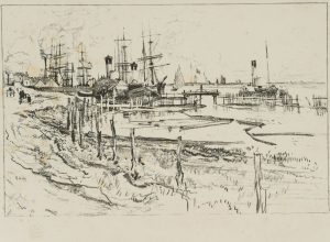R. GOFF (1837-1921), Hafenansicht mit Passanten, aus “The Studio”, 1896,