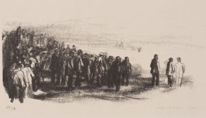 J. MAYRHOFER (*1902) zug., Zuschauer, 13/50, moderne Grafik, Figürlich Porträt