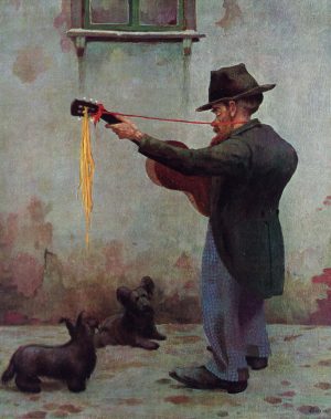 M. CLAUSS (1892-1975), Musikant Ständchen spielend, Realismus Stadtbilder