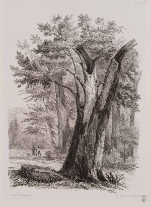 A. PENNAUTIER (*1803), Fontainebleau. Waldstück mit Baum, Radierung Romantik