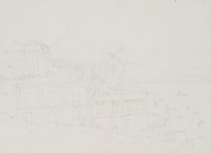 E. FÜRSTENAU (*1862), Villa an der Küste bei Neapel, um 1920, Bleistift