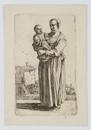 Unbekannt (17.Jhd), Niederlande, Mutter mit Kind vor Häusergruppe, Rad.