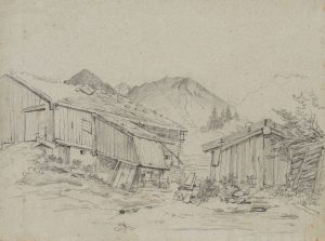 T. WEBER (1813-1875), Bauernhof und Häuser in Tirol, Bleistift Romantik