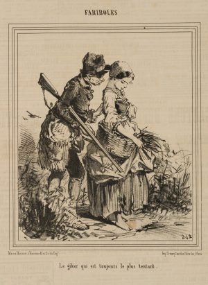 E. BEAUMONT (1821-1888), Karikatur. Jäger und Mädchen, Moderne Karikatur
