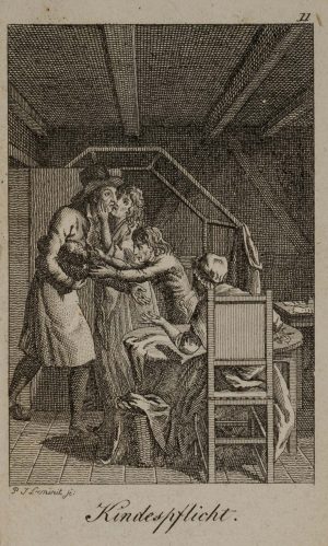 Unbekannt (19.Jhd), Buchillustration, “Kindespflicht”, Radierung Romantik