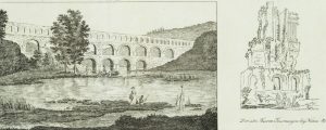 K. MÜLLER (19.Jhd), Gardon Brücke u. Thurm Tourmagne bei Nimes, Romantik