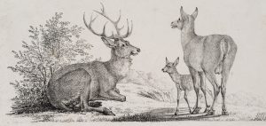 Unbekannt (19.Jhd), Vorlagenblatt, Rehe, Zeichenvorlage, Radierung Figürlich