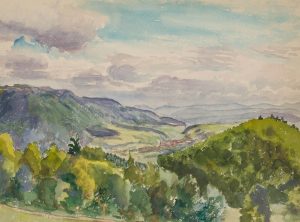 E. FÜRSTENAU (*1862), Panoramablick auf die Alpen mit Dorf im Tal, um 1920,