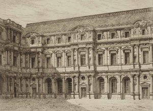 E. SADOUX (1841-1906), Le vieux Louvre, um 1850, Rad. Barock Architektur