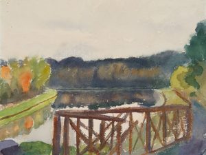 E. FÜRSTENAU (*1862), Blick von einem Geländer auf einen Fluss, um 1920,