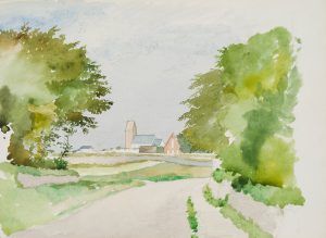 E. FÜRSTENAU (*1862), Blick von der Landstraße auf eine Ortschaft, um 1920,