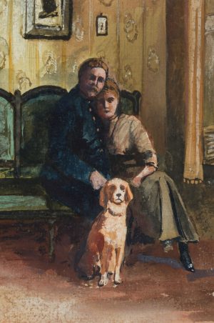 SOLMYTSCHEGOPAK (20.Jhd), Interieurszene. Idylle zu dritt (Hund),1916, 1916,