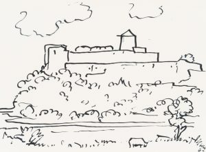 F. BOLLINGER (19.Jhd), Nördl. Ansicht auf Schloss Pierre Encise, Lyon, Romantik