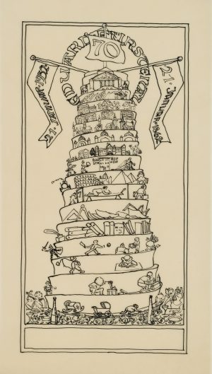 E. FÜRSTENAU (*1862), Geburtstagskarte des Künstlers mit Lebenstorte, 1932, Tus